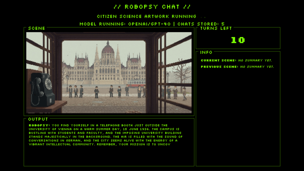 From September 24 to 26 (2025) ROBOPSY took stage at the TED AI Vienna conference, unveiling its newest version: a text & image role-play Hybrid that pushes the boundaries of collective memory and AI storytelling.