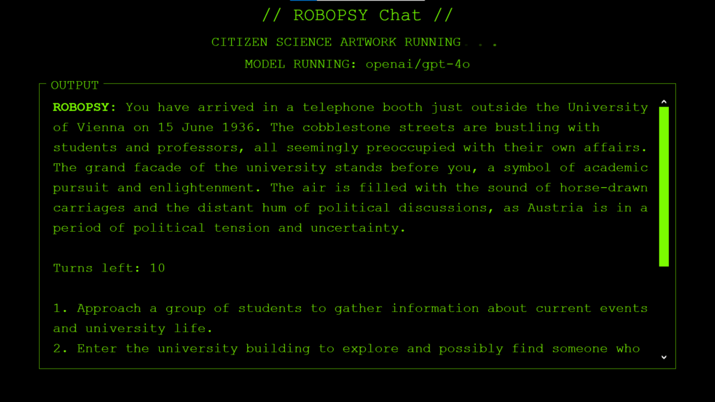 Memory through Role-Playing with AI Language Models at the University of Applied Arts Vienna in the Experimental Game Cultures Department.